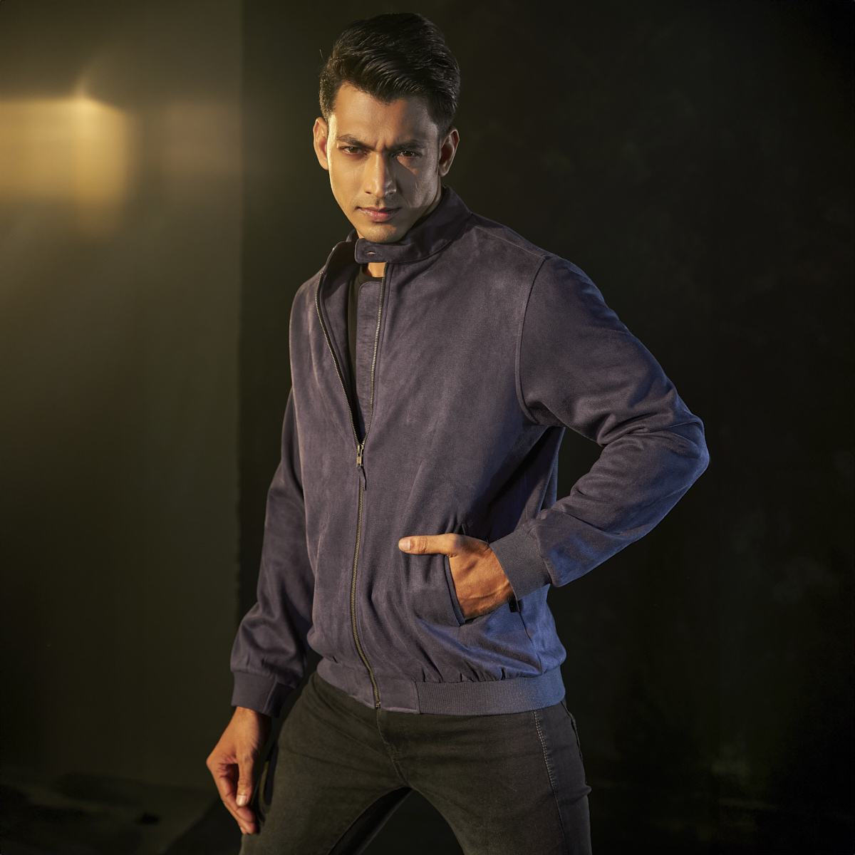 Premium Suede-Effect Mock Neck Biker Jacket